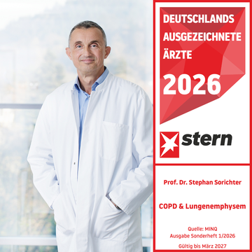 Prof. Dr. Sorichter wurde 2026 erneut in die stern-Ärzteliste aufgenommen und damit für seine herausragende Expertise als Lungenfacharzt ausgezeichnet.