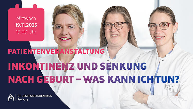 Am 19. November 2025 lädt die Klinik für Gynäkologie am St. Josefskrankenhaus Freiburg alle Interessierten herzlich zu einem Informationsabend rund um das Thema Beckenbodenschwäche, Inkontinenz und Senkungsbeschwerden nach der Geburt ein.